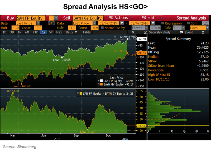 To analyze a Spread or Ratio, the Bloomberg functions HS<GO> and GR<GO>, respectively, can be used.