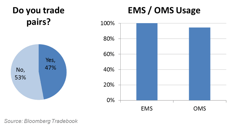 Even though nearly a majority of respondents trade pairs, an electronic workflow challenge faced by many institutions is the certification of cross-asset algorithms into their EMS and/or OMS. It is important to identify and leverage integrated solutions due to the versatility of cross-asset algorithms. We do however recognize that the complexity of pair and cross-asset algorithms and their non-standard parameters have been a hurdle to their implementation in EMS’ and OMS’. In this discussion we interchangeably use the industry-common terms “pair” and “cross-asset” to describe these algorithms that can execute two or more securities simultaneously.