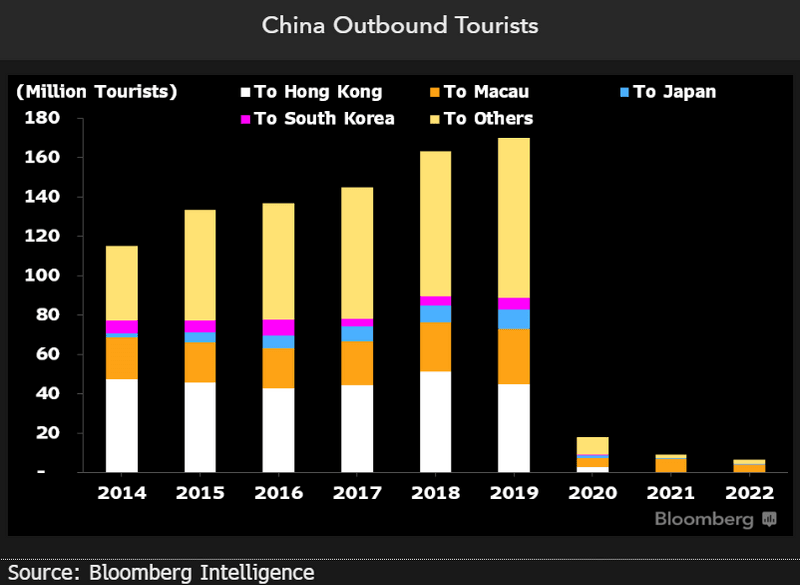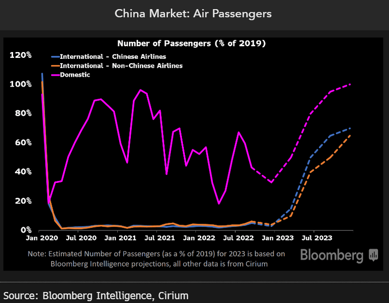 China is about to unleash its vacation-starved masses upon the domestic and international travel scene after nearly three years of lockdowns and social restrictions. We highlight via five key charts the key industries and companies that could record exponential growth.